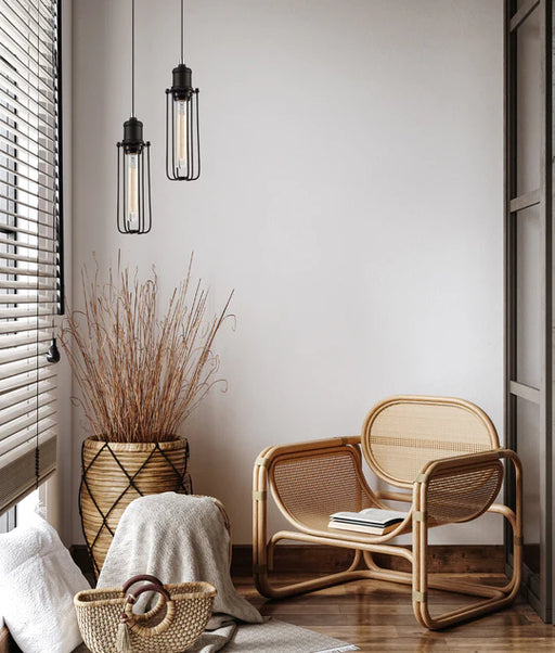 View full detailsInterior single pendant light Material: powder coated iron Shape: tubular cage Lamp holder: E27 (Max.72W) Globe not included For indoor use only S...
