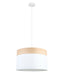 TAMBURA: Scandinavian Large Drum Cloth Shade with Wood Veneer Trim Pendant Lights